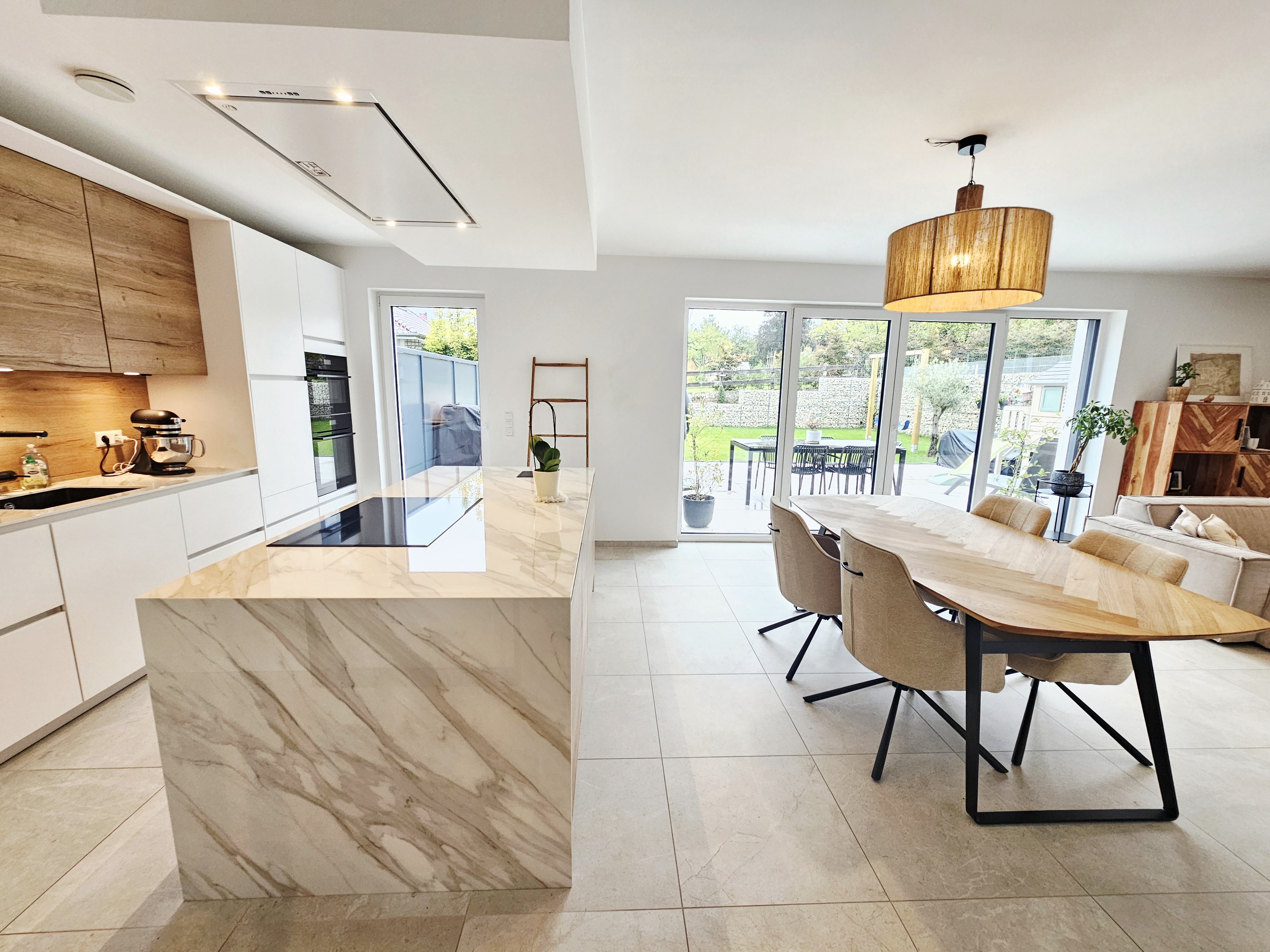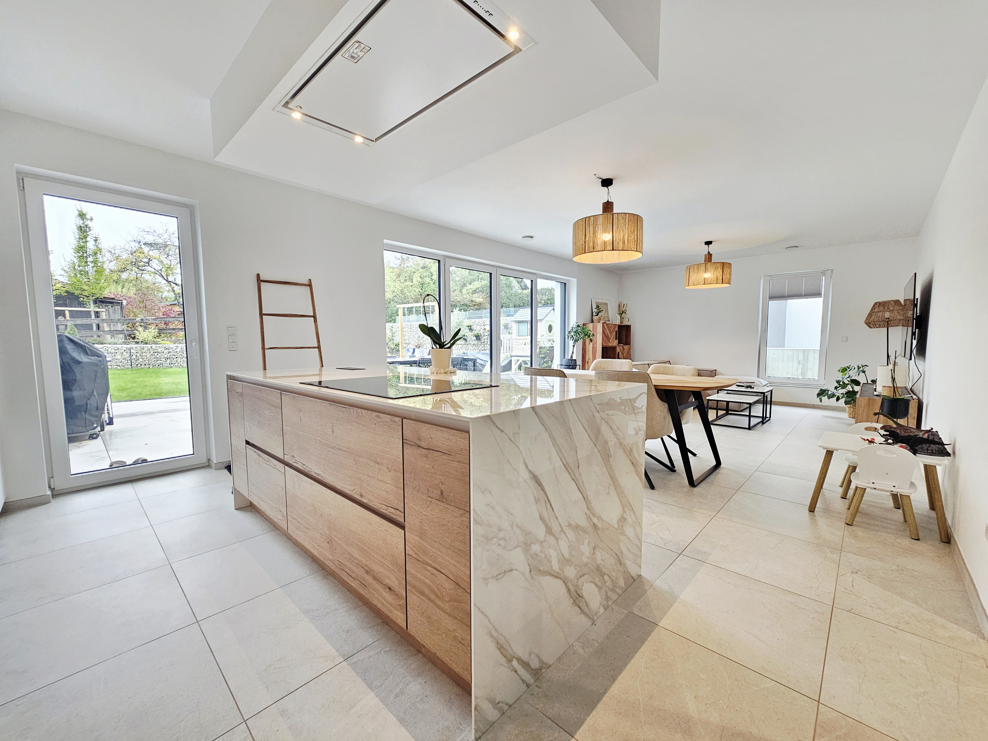 - belle cuisine ouverte avec îlot de cuisine
