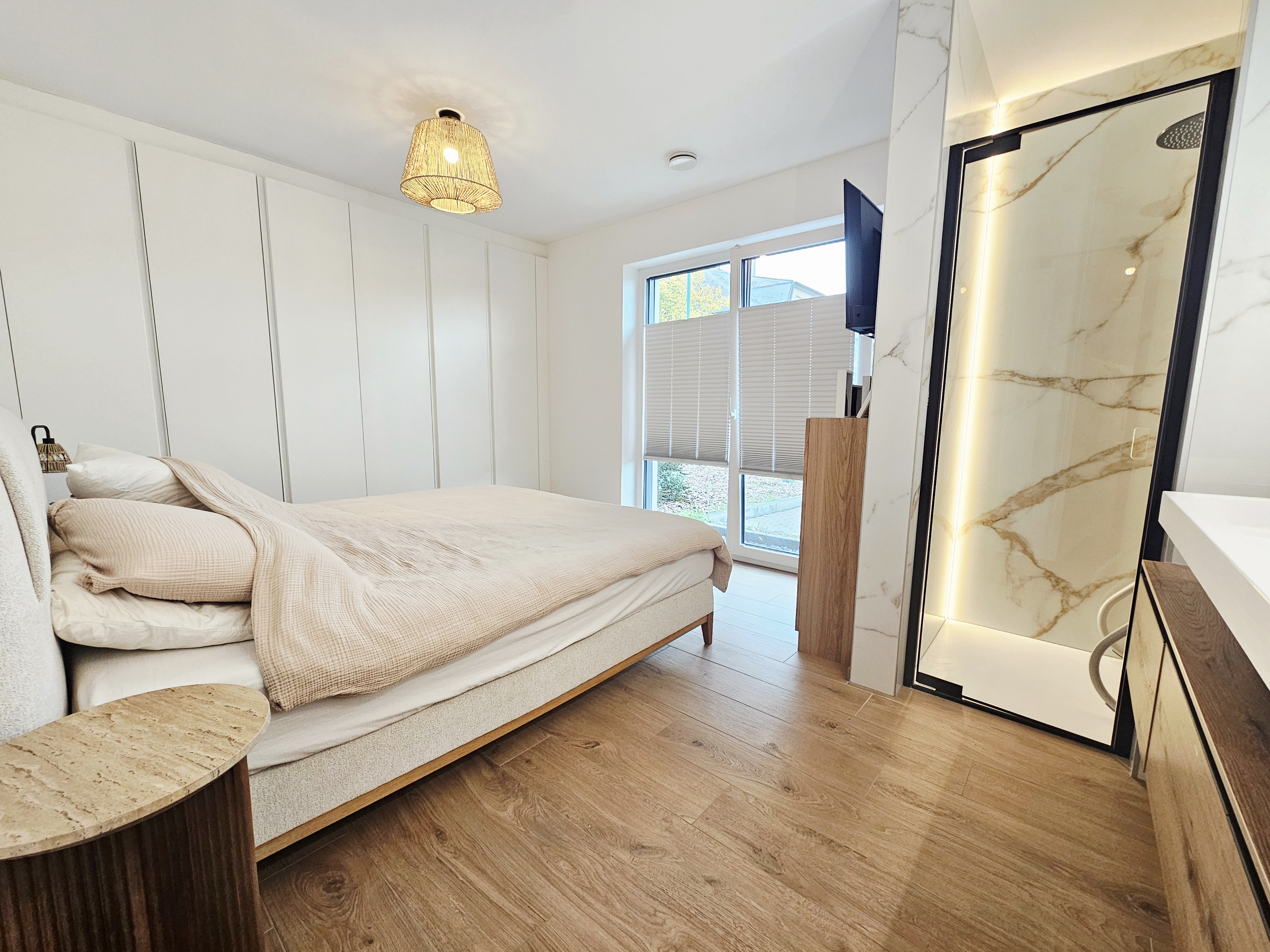 - une chambre parentale avec douche et lavabos privés